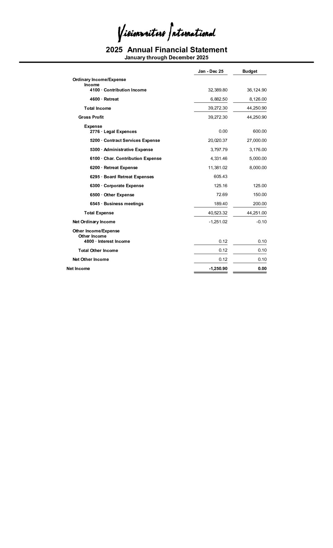 Visionwriters™ International is a 501(c)3 non-profit corporation. Non-profit means we are not looking for personal or monetary gain, but seeking to offer excellent service and valuable materials to God’s people. Our goal is to provide resources that help eliminate the ache of a silent God by helping Christians see and respond to the Christ who is in them, as them. With that goal in mind, we are careful to seek the proper use and management of each dollar. We strive to keep operating expenses to a minimum to maximize our outreach. Our products and services are not expensive. The income we receive along with our Withworkers’ monthly support covers the cost of running a professional office and the furtherance of our vision.